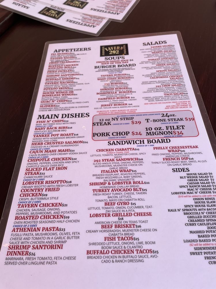 Welcome to Tavern 292, an American dining gem located at 292 Passaic Ave, Fairfield, NJ. This spot is perfect for both casual lunches and romantic date nights. The menu boasts an impressive array of mouthwatering options that cater to every palate.